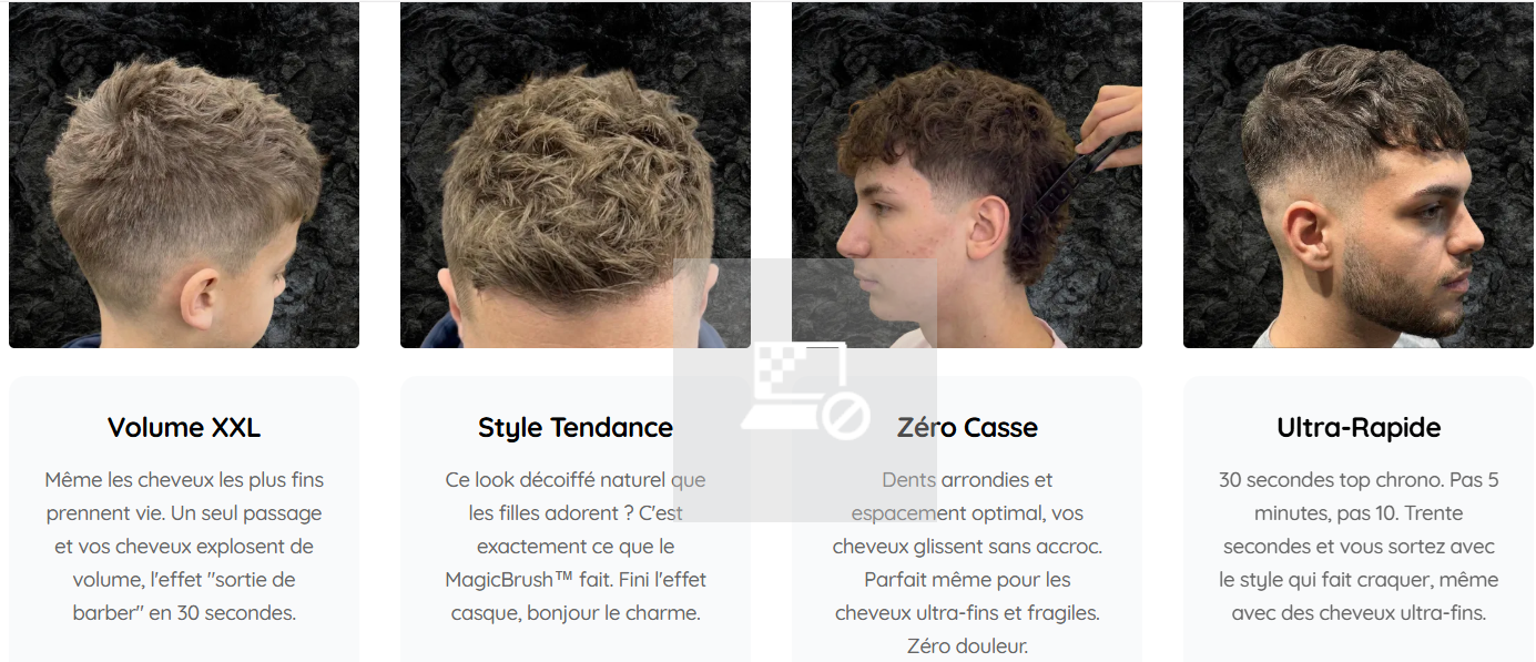 Pendant ce temps, d'autres mecs sortent de chez eux avec LE style qui fait tourner les têtes, naturel, volumineux, la coupe tendance que les filles adorent. Et ça leur prend 30 secondes.
