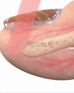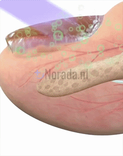NoraClear™ utilise une lumière infrarouge thérapeutique qui, comme l'ont prouvé des études récentes, permet de réduire la libération de substances pro-inflammatoires et de favoriser les cytokines anti-inflammatoires, créant ainsi un environnement propice à la régénération du lit de l'ongle.